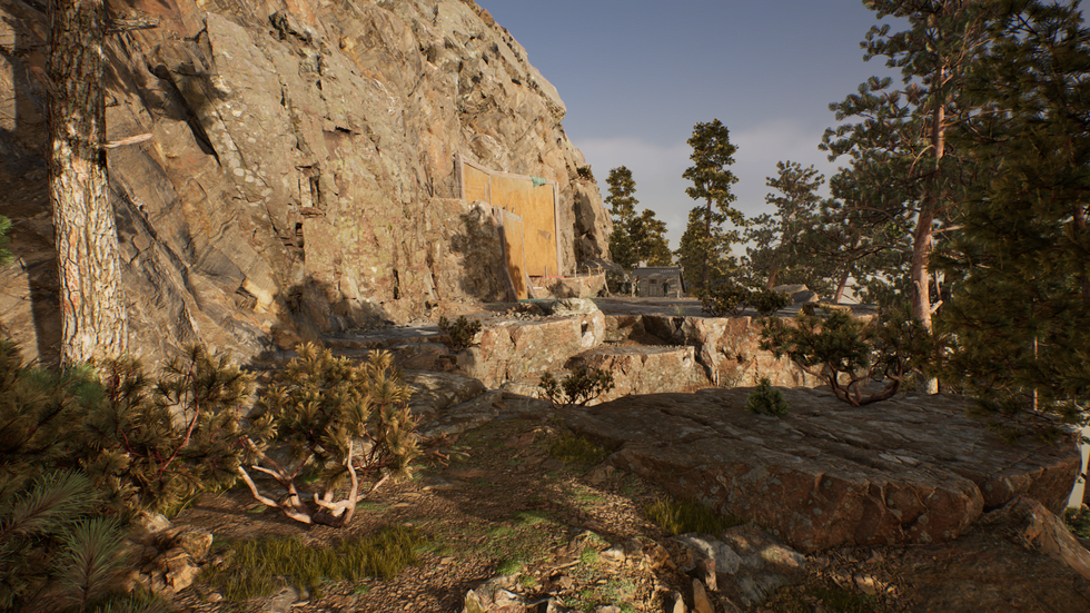 We decided to turn this level, Herschel Quarry, into our Vertical Slice. We create a shorter version of the level, but do include the full loop from beginning to end. We reduce the playable spaces, some of the story moments and reduce the number of puzzle areas from 3 to focus on 1. We're also using the Vertical Slice to do our first Motion Capture shoot test run, in preparation for the full shoot that's planned at a later stage. I update the blockout with our new VS plan, implement all the level logic and scripted events to ensure the level is playable from start to end and do a full art-pass, using the modular kits developed by our artists and a number of assets from the Quixel Megascans library for most of the cliffs and rocks.